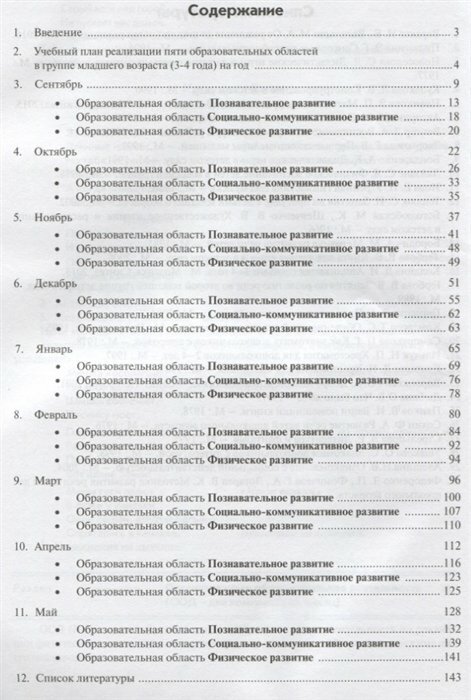 В данном пособии представлен учебный план на год по реализации пяти образовательных областей: познавательное развитие, речевое развитие, физическое развитие, социально-коммуникативное развитие, художественно-эстетическое развитие детей группы младшего возраста (3-4 года).