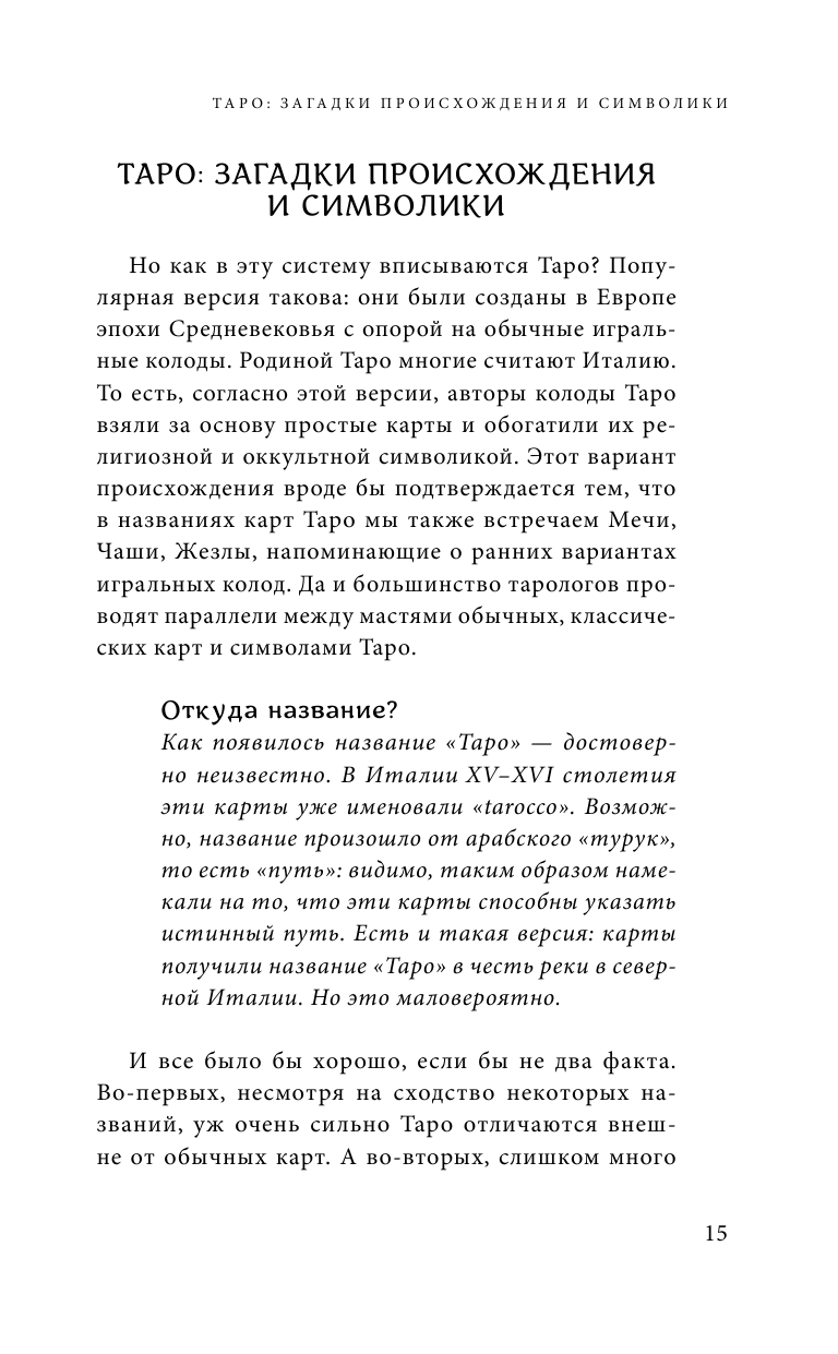 Здесь вы найдете основные правила гадания и работы с Таро, детальные описания прямых и перевернутых значений каждой из 78 карт Старших и Младших Арканов, самые эффективные и популярные расклады, которые помогут вам получить ответы на все волнующие вас вопросы. Эта книга станет прекрасной основой для дальнейшего знакомства с другими колодами Таро и самыми сложными способами чтения и толкования карт и раскладов.