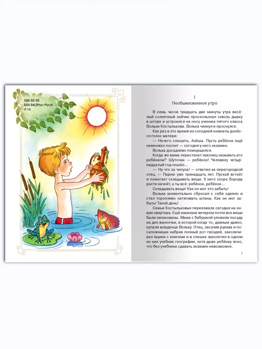 В детстве не читала книгу, но несколько раз пересматривала наш советский добрый фильм. Теперь покупаю детям книги, и решила что без старика Хоттабыча библиотека- не библиотека) Рекомендую к приобретению, хорошее издание, листы белые, шрифт удобный, размер книги тоже. Иллюстраций мало, но учитывая, что книга для детей третьего класса, не меньше, то наверное достаточно) Волшебная, добрая, старая сказка на все времена.