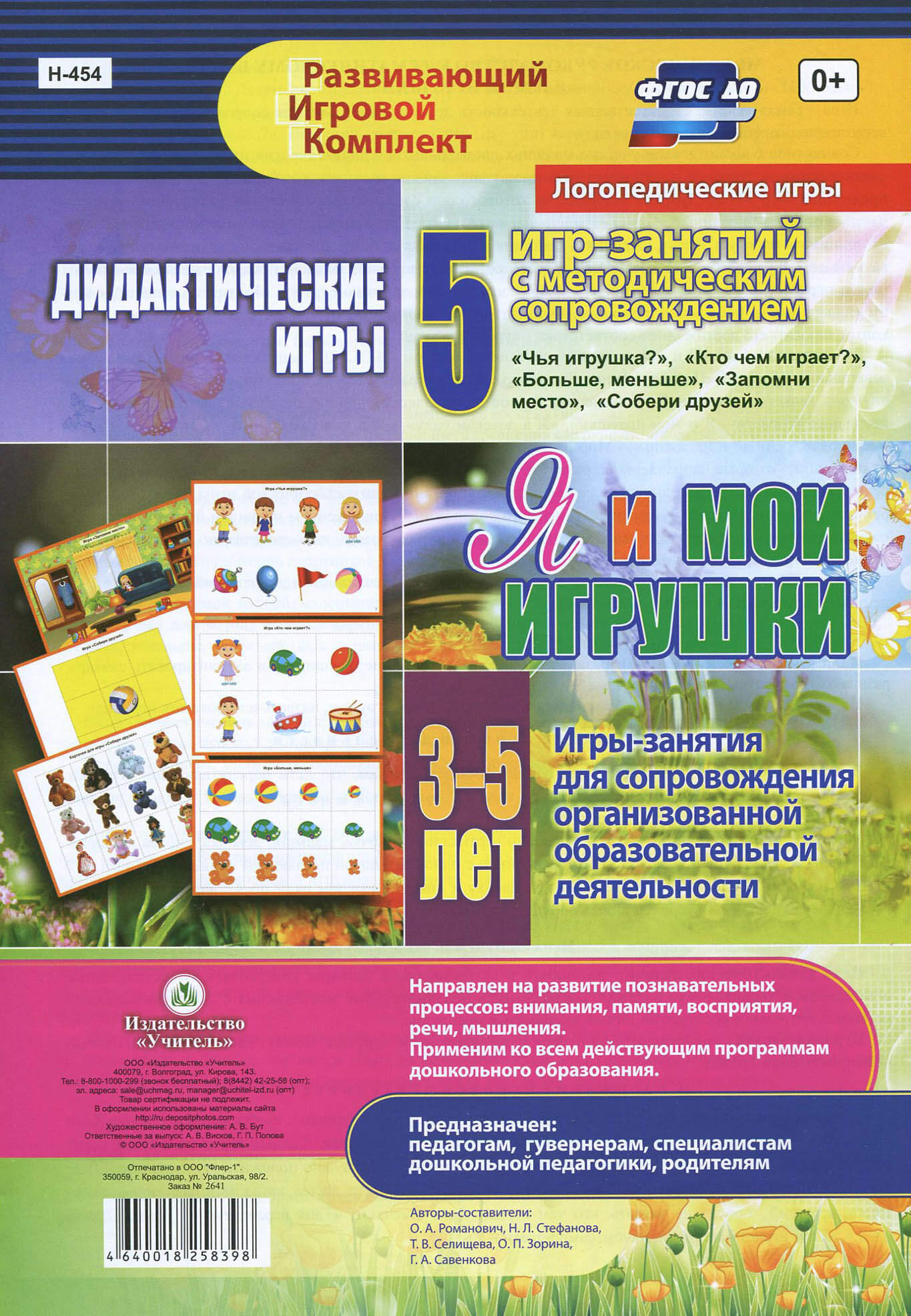 Игровой материал подобран в соответствии с тематическим блоком: "Я и мои игрушки", в котором представлены 5 игр "Чья игрушка", "Кто чем играет?", " Больше, меньше", "Запомни место", "Собери друзей" с описанием и вариантами усложнения игрового содержания, даны методические рекомендации по организации дидактической игры. Игры направлены на развитие познавательных процессов: внимания, памяти, восприятия, речи, мышления. Приложением к каждой игре является красочный наглядно-дидактический материал, необходимый в организации непосредственно образовательной, совместной и самостоятельной деятельности взрослых и детей.