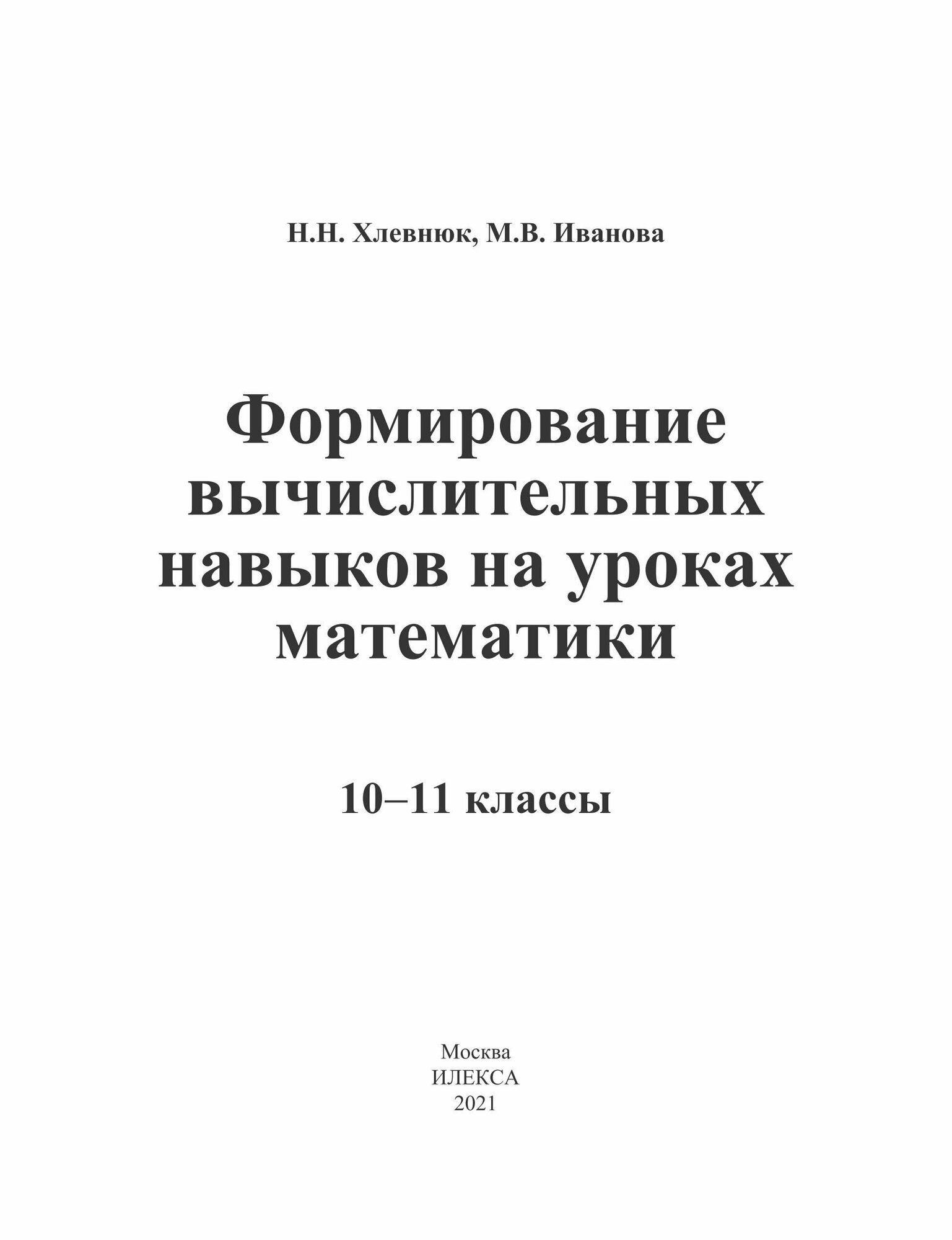 Формирование вычислительных навыков на уроках математики. 10-11 классы; Илекса, 2021