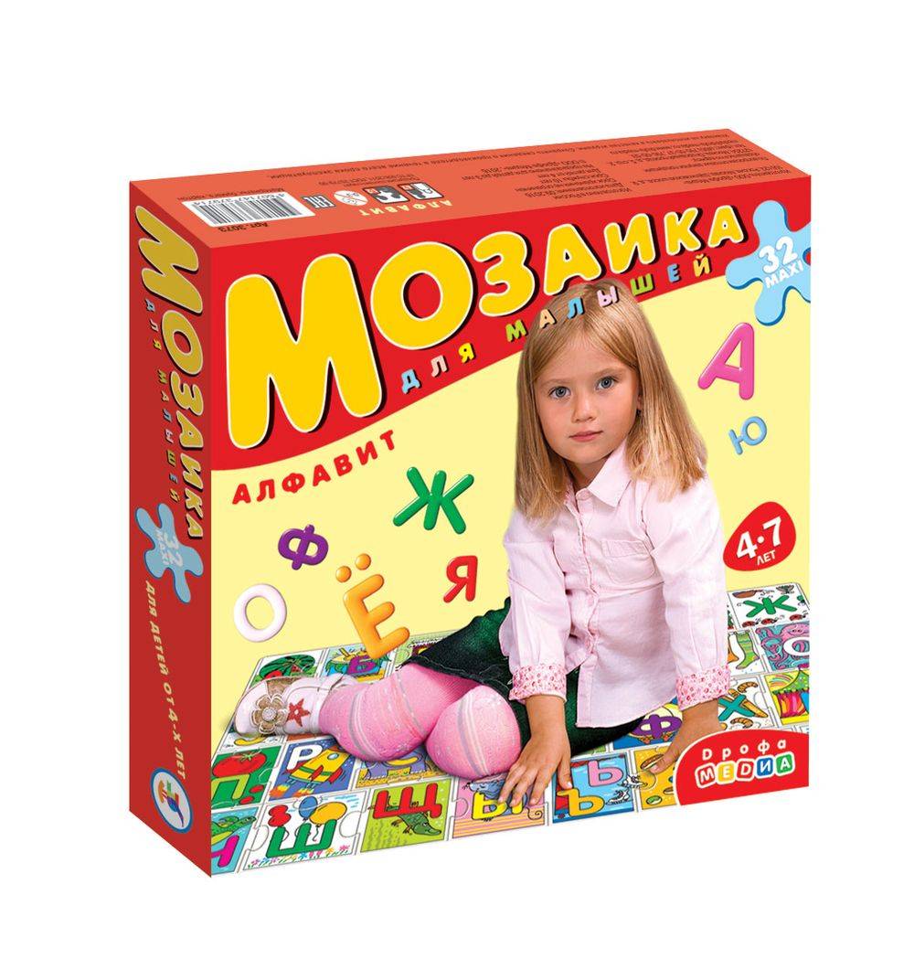 Крупные и яркие детали мозаики удобно собирать на полу. Ребёнок научится складывать сюжетную картинку из нескольких частей и подбирать подходящие по форме недостающие фрагменты рисунка. Игры развивают зрительное восприятие, образное мышление и мелкую моторику рук, расширяют кругозор, познакомят малышей с разными животными, морскими обитателями, буквами, цифрами и счётом в пределах десяти. Набор из 24 пазловых элементов, после сложения которых получается азбука. Размер собранного поля 70х50 см.
