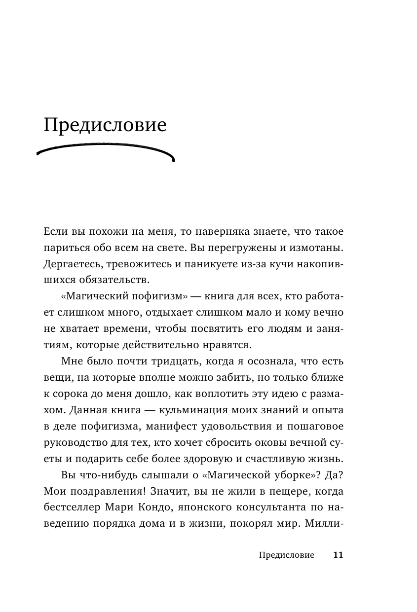 Когда-то бестселлер Мари Кондо "Магическая уборка" помог журналистке и писательнице Саре Найт выкинуть весь хлам и привести дом в идеальный порядок. Этот опыт вдохновил ее полностью изменить свою жизнь: избавиться от бесполезных дел, навязанного чувства вины и нежелательного общения и направить энергию и время на любимых людей и приятные занятия. В этой книге Сара делится с нами своим методом "ментальной уборки", который позволит забить на всякую ерунду и жить легко и ярко.