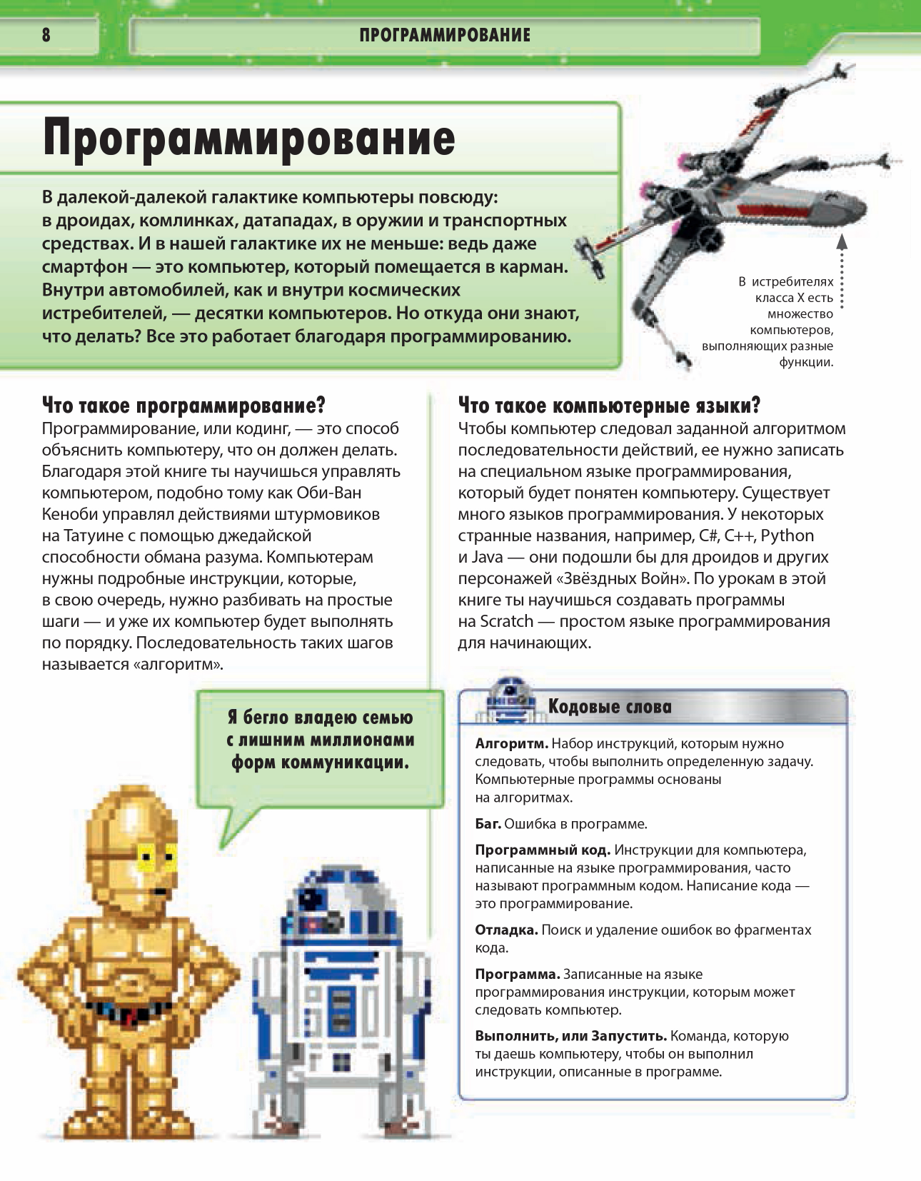 Учись программировать на Scratch вместе с C-3PO и другими легендарными героями "Звёздных Войн"! Создай шесть отличных компьютерных игр и брось вызов друзьям - кто из вас наберёт больше очков? Стань магистром Scratch - анимируй спрайты, создавай и совершенствуй свои компьютерные игры.