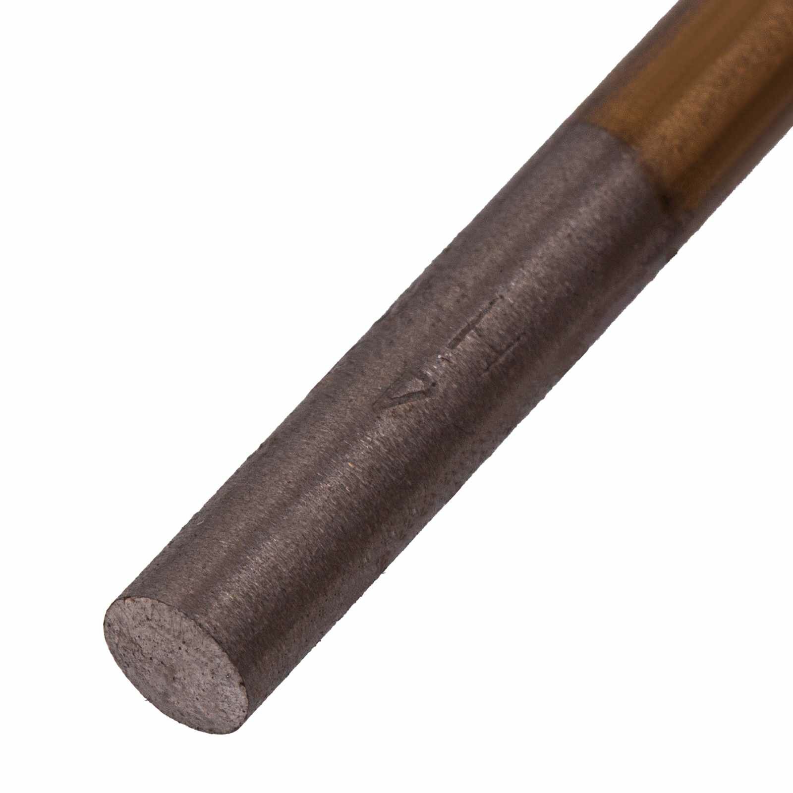 Изготовлено из инструментальной легированной стали. Поверхность сверла из титаносодержащего сплава, что значительно повышает эксплуатационные характеристики сверл по металлу (покрытие из нитрида титана увеличивает стойкость инструмента в 2–2,5 раза).