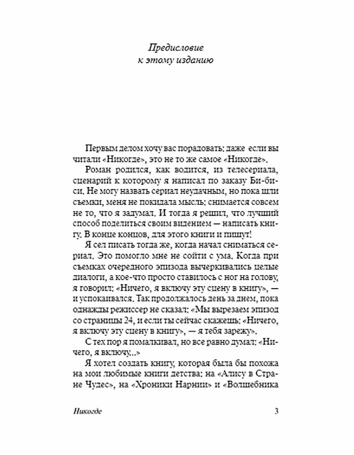 Под Лондоном скрывается место, о котором большинство людей даже не подозревает. Город монстров, святых, убийц и ангелов, рыцарей в сияющих доспехах и бледных девушек в черном бархате. Город тех, кто провалился сквозь трещины жизни. Молодой человек по имени Ричард, совершив акт доброты, оказывается в знакомом и в то же время странном мире под названием Никогде…