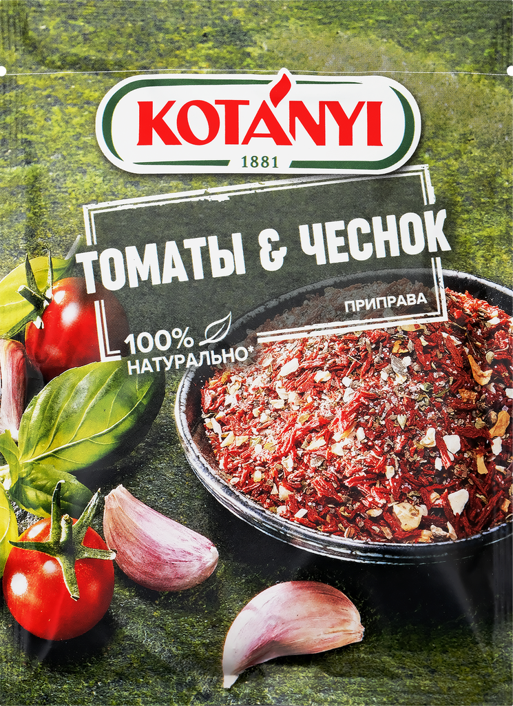 Приправа "Томаты & Чеснок" Kotanyi придает блюдам сладковатый и насыщенный пряный вкус. Особенно хорошо подходит для блюд итальянской кухни, таких как паста, пицца, овощная антипаста, а также для теста, соусов и маринадов.