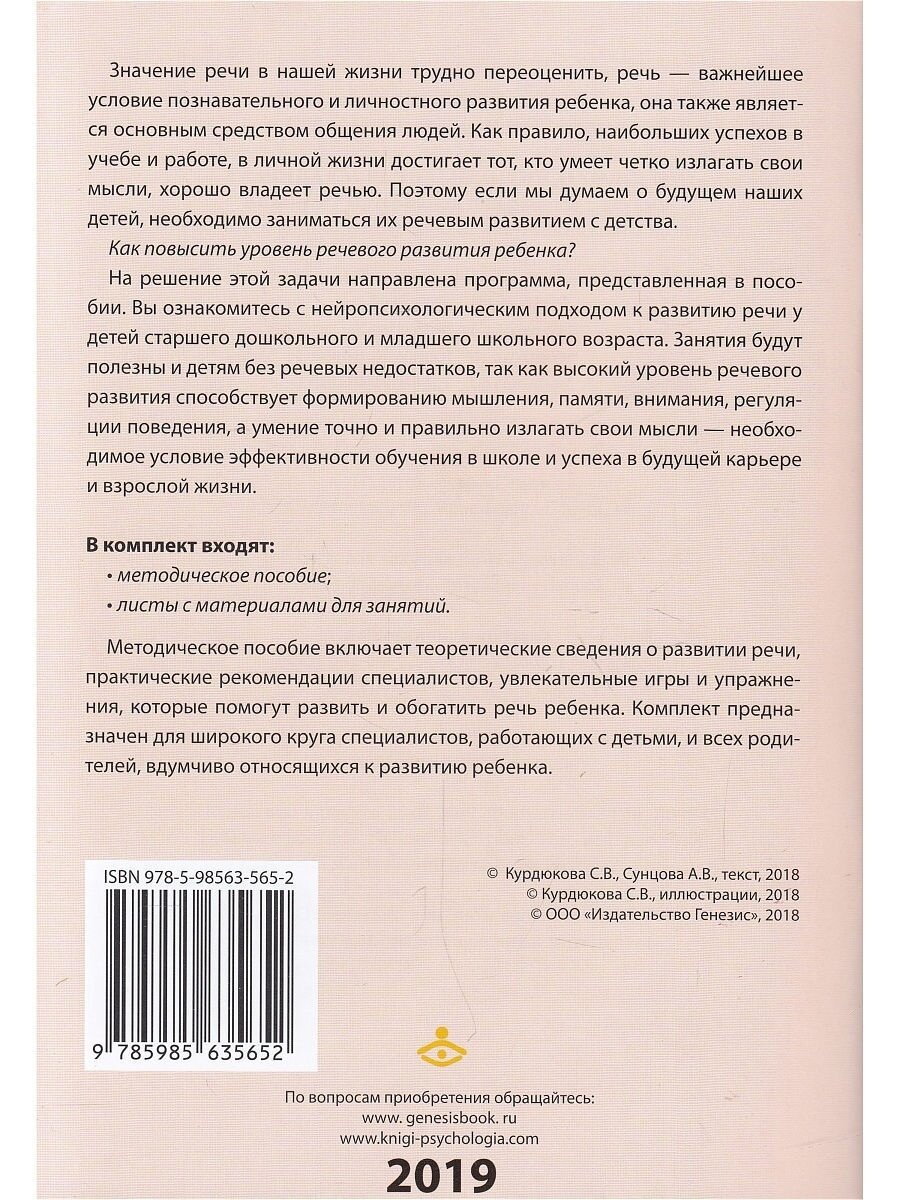 Развиваем речь с нейропсихологом. Комплект материалов для работы с детьми старшего дошкольного и мл.; Генезис, 2019