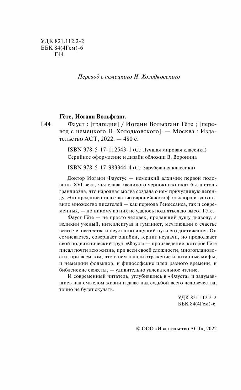 Фауст (Гете Иоганн Вольфганг фон, Холодковский Николай Александрович (переводчик)); АСТ, 2022
