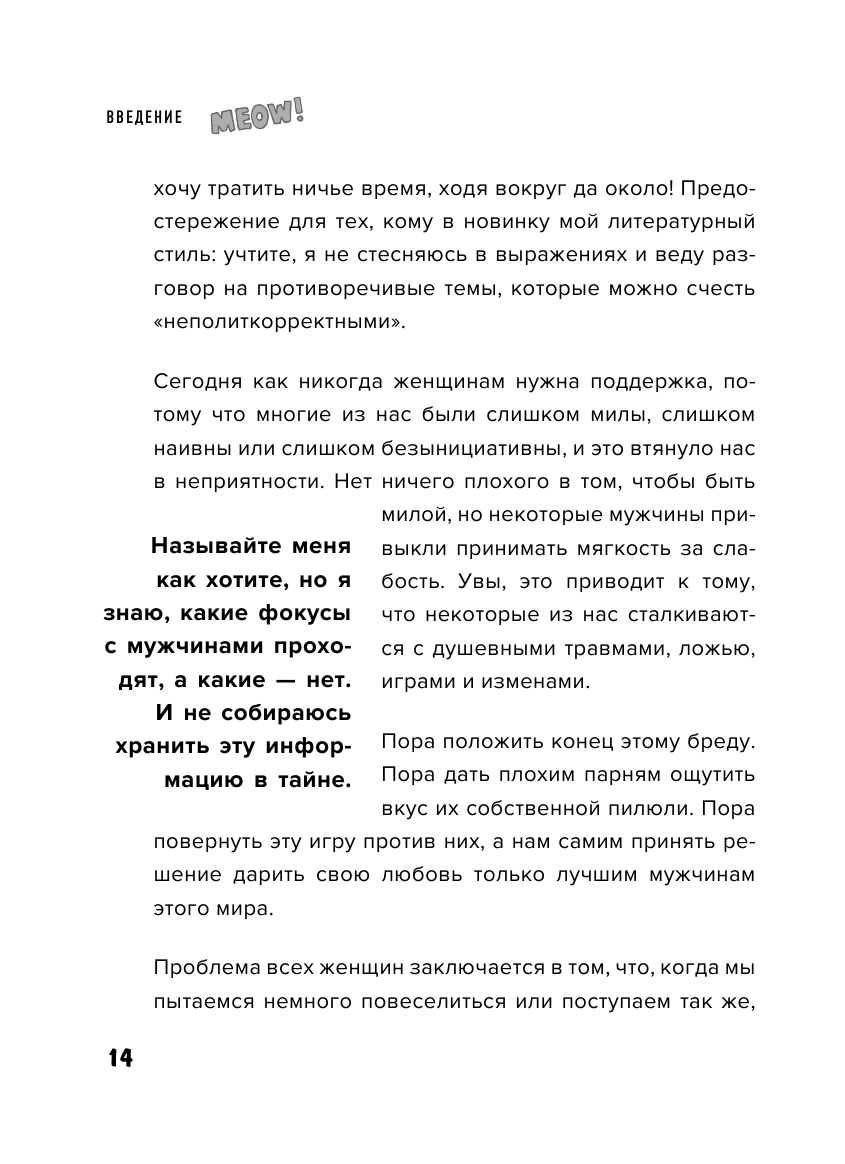 Хорошо, что не я купила этот шедевр современной литературы. Повторение предыдущей книги. Сначала Кара решила показать себя, как нашу сестру или лучшую подругу, но на следующей странице тебя уже критикуют и унижают без повода. Противоречия и вредные советы-это то, что подготовила для вас ваша Кара Кинг. Никогда не следуйте им. Я не врач, но даже я понимаю, что можно заболеть чем-то серьёзным, делая так как написано в этой книге. Женщина-товар. Мужчина-потребитель и животное. А главный объект этой книги-ваш финансовый инструмент. Автор противоречит и унижает всех женщин. Смотрит на тебя с высока (в какой бы ситуации ты не оказалась).