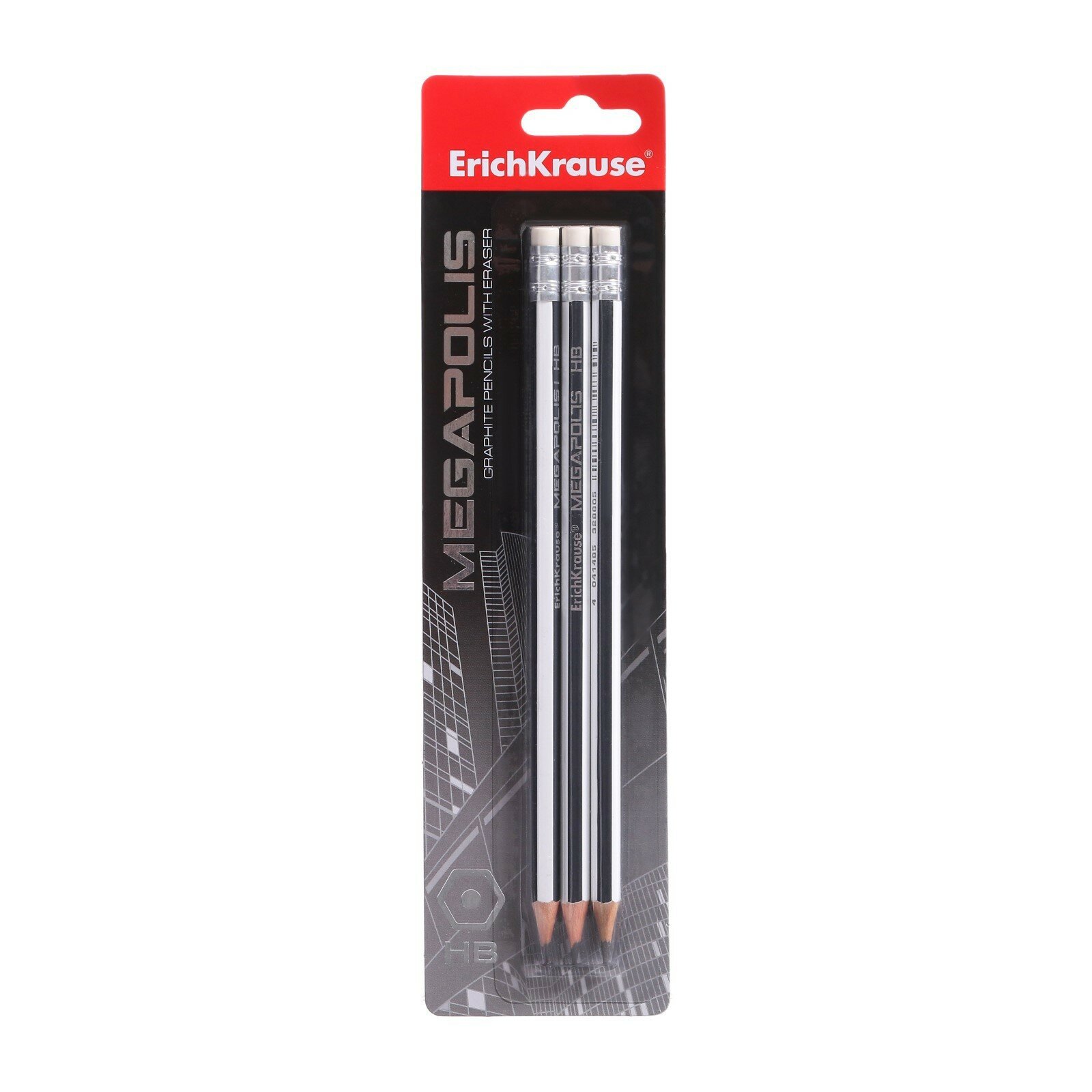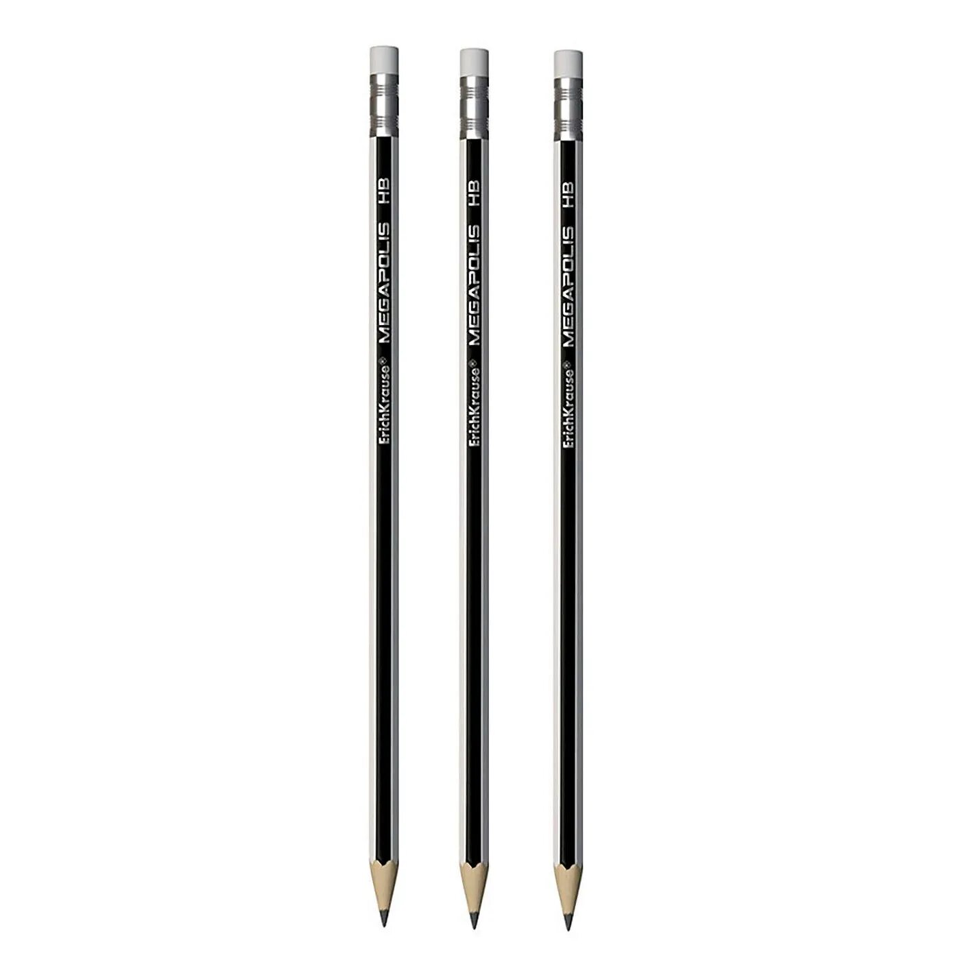 Карандаш HB Erich Krause чернографитный шестигранный с ластиком ErichKrause MEGAPOLIS®