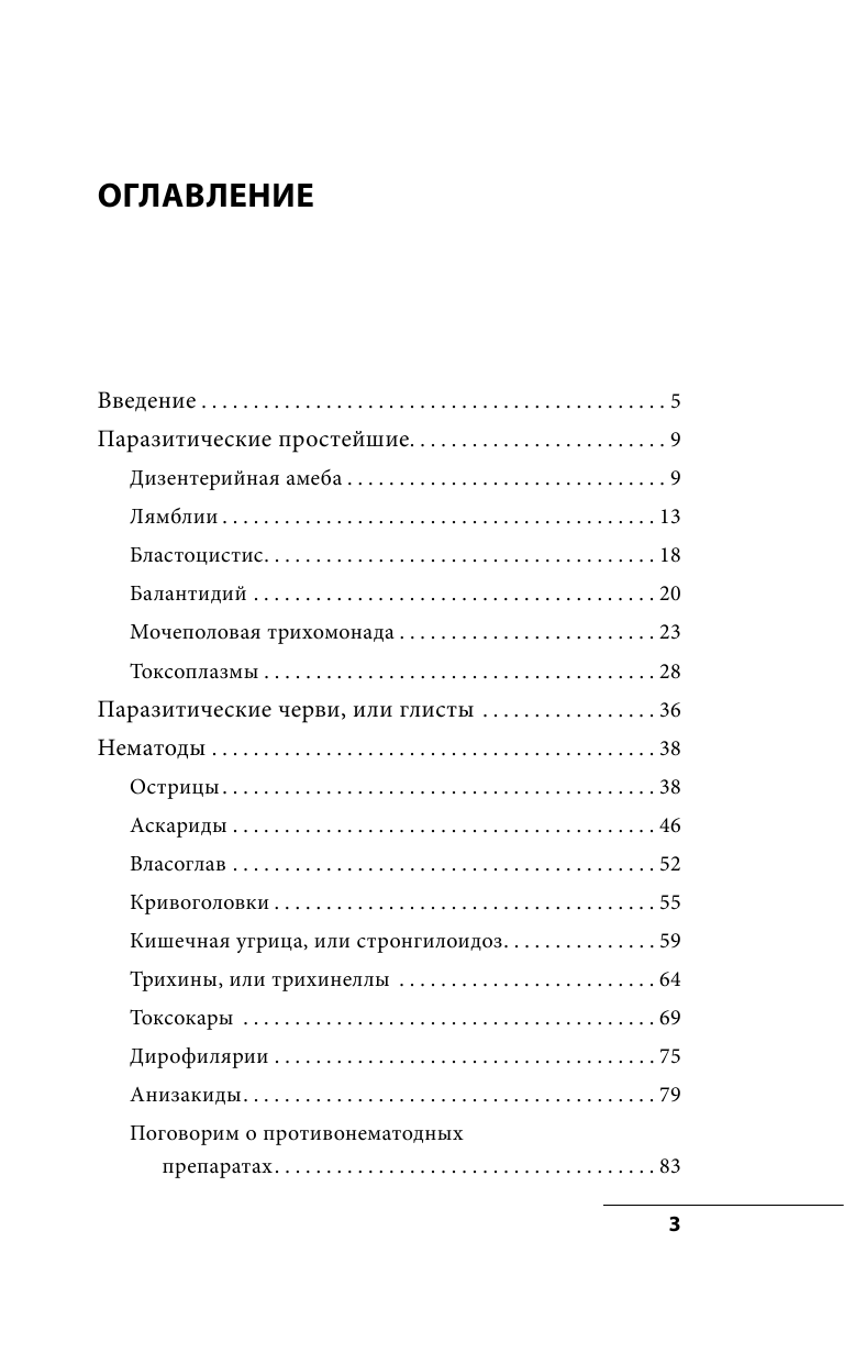 Елена в своей книге поглавно, с иллюстрациями, проходится по основным видам паразитов, встречающимся в повседневной жизни россиян; развеивает мифы об этой не самой популярной, но, несомненно, важной теме; разоблачает ( прям пофамильно) шарлатанов; отвечает на распространённые вопросы обывателей, объясняет, когда надо начинать паниковать, а когда нужно просто включать мозг и не заниматься самолечением.