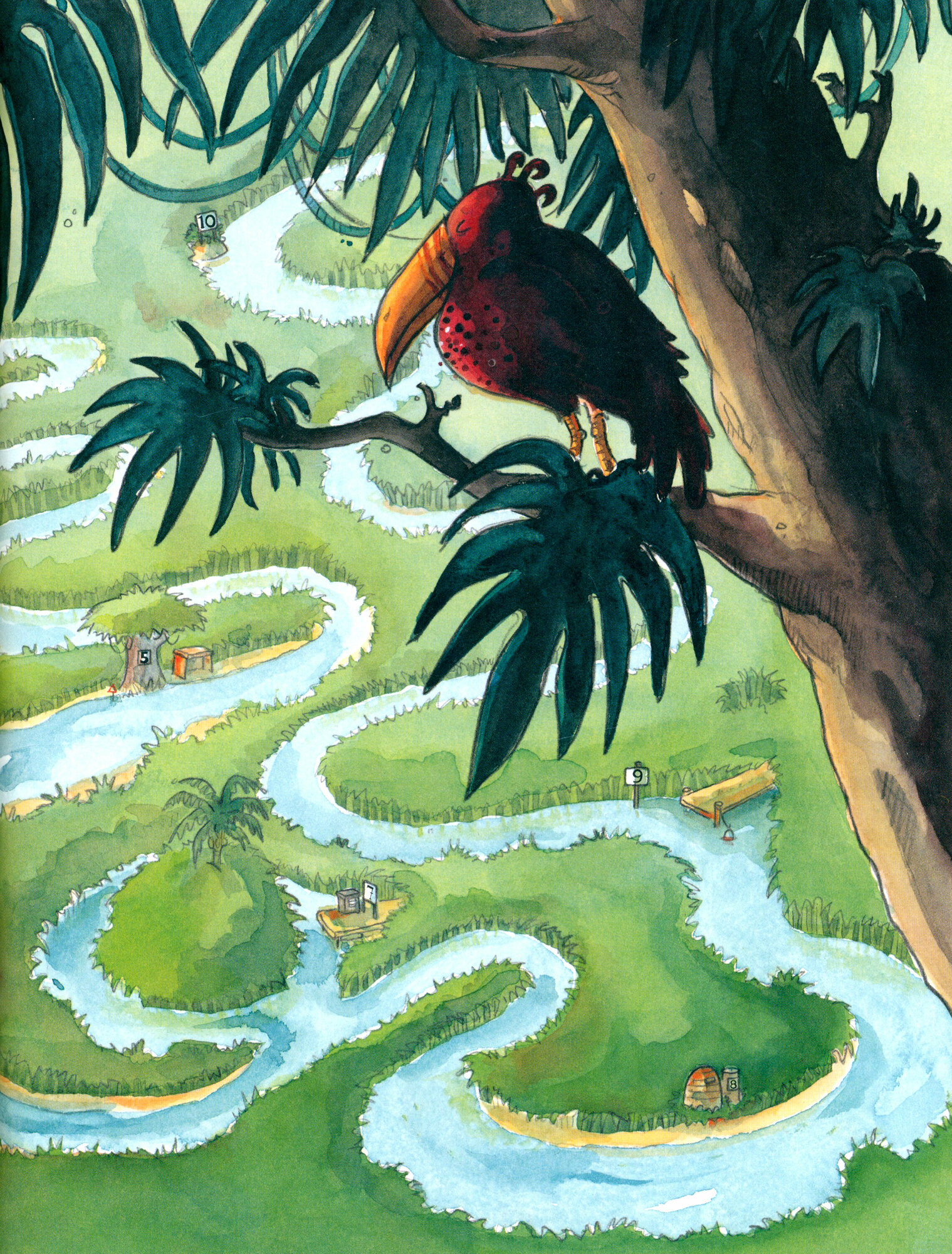 Одно время была любимой книжкой у детей шести и двух лет. Очень приятный слог, красивые, яркие ллюстрации. Очень понравилось в ней то, что там в игровой форме можно отработать счёт, да и история сама по себе приятная в стихах. Здесь мы искали и считали не только зверей, о которых говорилось в стихотворении, но и десять птичек, которые присутствуют на каждом развороте. Рекомендую