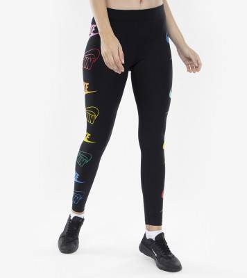 Легинсы nike, выполненные из гладкой ткани с цветной графикой по бокам, отлично подойдут для яркого образа в спортивном стиле.