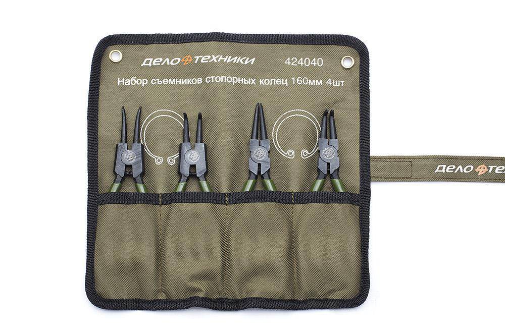 Используется для разжимания и сжатия внешних и внутренних стопорных колец. Губки с шарнино-губцевым механизмом изготовлены из хромванадиевой стали, которая обладает повышенной твердостью и стойкостью к большим нагрузкам. Благодаря специальной форме рукояток исключено выскальзывание инструмента при работе. Тетроновая сумка позволяет компактно переносить и хранить набор. Технические характеристики - Тип стопорного кольца: внешнее; - Материал: хромванадиевая сталь; - Чехлы на рукоятках: есть; - Длина: 160 мм; Комплектация: - 4 съемника стопорных колец - 160 мм; - Тетроновая сумка. Габариты и вес: - Габариты: 200х70х50 мм; - Вес: 0,59 кг.