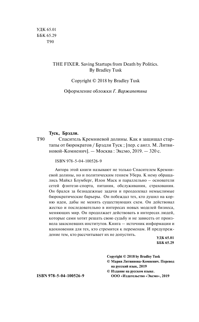 Спаситель Кремниевой долины. Как я защищал стартапы от бюрократов; Эксмо, Редакция 1, 2019