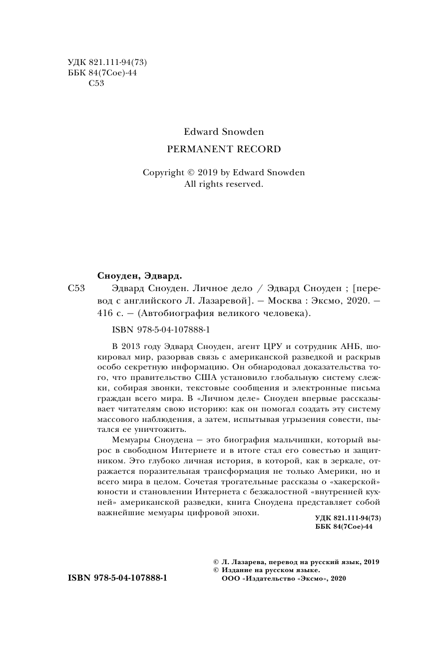 Эдвард Сноуден. Личное дело (Эдвард Сноуден); Эксмо, Редакция 1, 2020