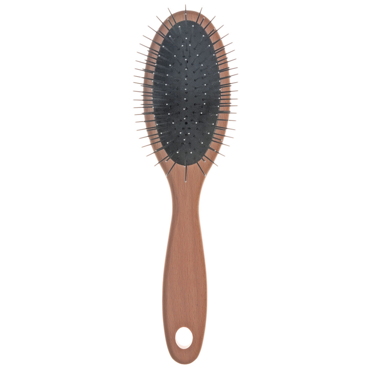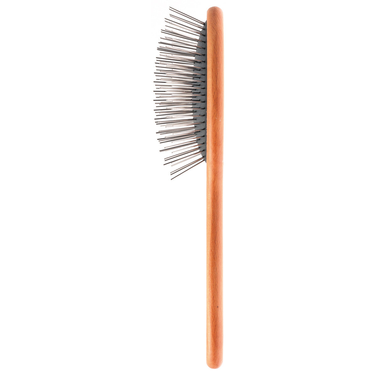 Деревянная ручка из бука удобна в использовании - ультралегкая и не скользит в руке. Запатентованная система крепления зубьев, не позволяет зубьям вдавливаться внутрь и выпадать, что способствует более качественному расчесыванию и продлевает срок службы щетки. Скругленные кончики зубьев делают щетку безопасной для питомца. За счет длины зубьев при расчесывании шерсть животного хорошо просушивается, и ей придается объем.Длина ручки 105 мм. Рабочая область 100х51 мм. Длина зуба 22 мм. Диаметр зуба 0.75 мм.Материал: нержавеющая сталь, пластик, бук.