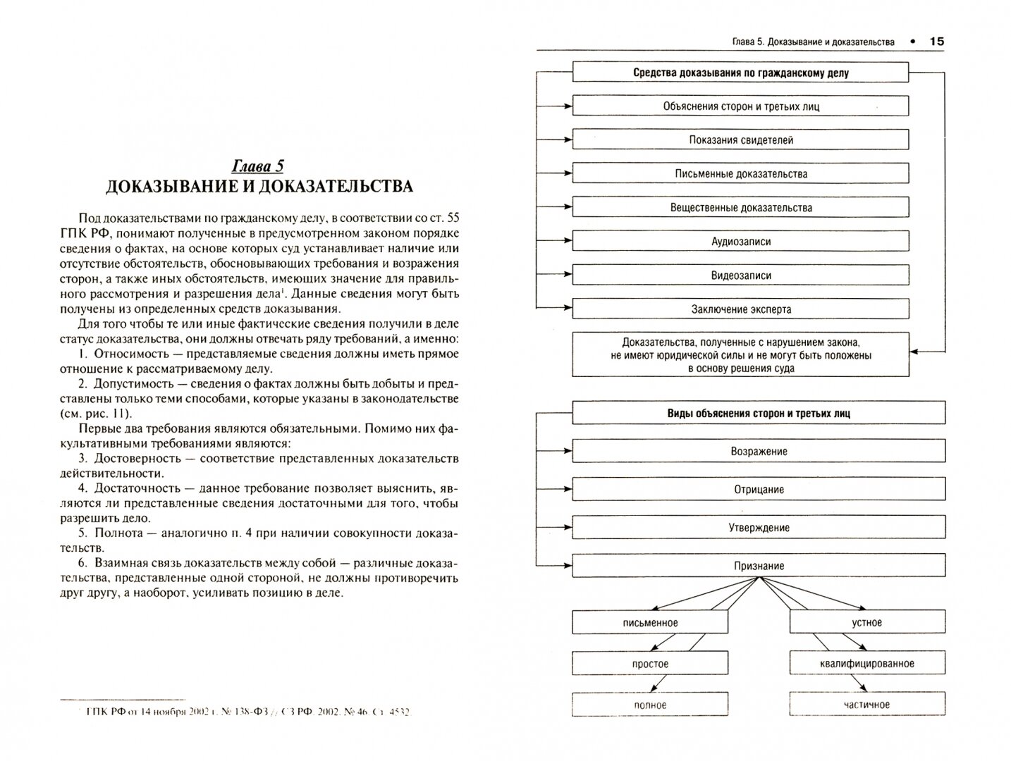 в учебном пособии используются комментарии, таблицы-схемы, в которых сосредоточены основные положения и моменты гражданского процесса: система судов общей юрисдикции, компетенция судов, доказательства, судебное разбирательство и другие положения. Пособие дает возможность студентам легче усваивать и запоминать теоретические сведения, более прочно связывает их с излагаемым материалом, позволяет четко структурировать его.