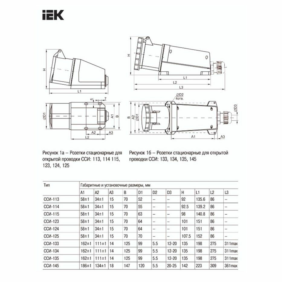 PSR12-063-5 Розетка 135 стационарная 3Р+РЕ+N 63А 380В IP54 IEK