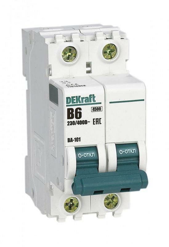 ВА-101 11016DEK Автоматический выключатель двухполюсный 6А (4.5 кА, B) Упаковка (6 шт.) DEKraft