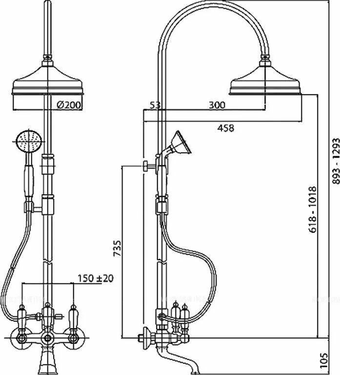 | Габариты верхнего душа | 200 |