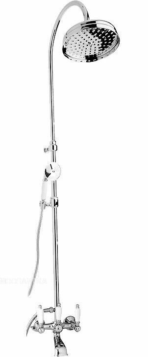 Душевая колонна со смесителем для ванны, верхним и ручным душем. Исполнение: Хром. Ручки: Белые