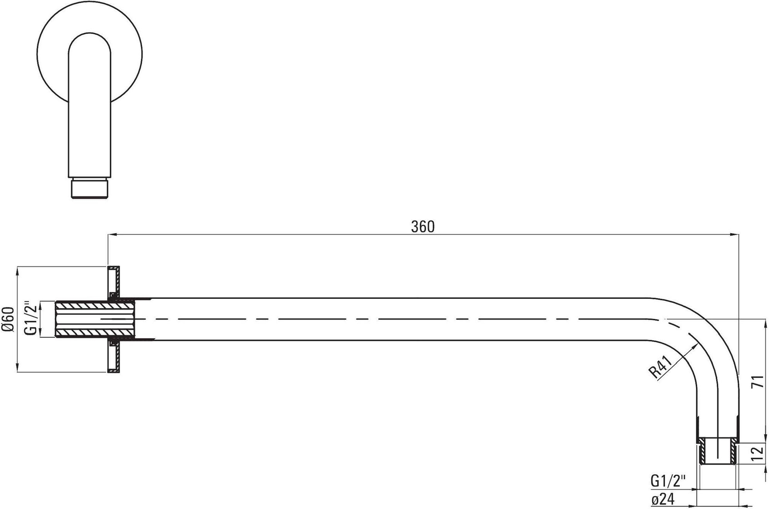 | Вылет верхнего душа | 360 мм |