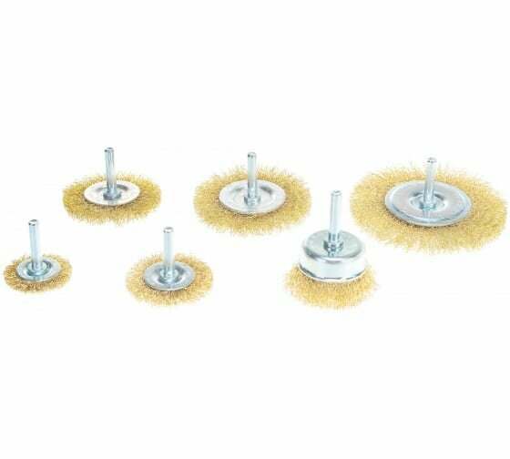 Набор щеток для дрели MATRIX 6шт. для дрели гофрированная латунированная сталь (74496)