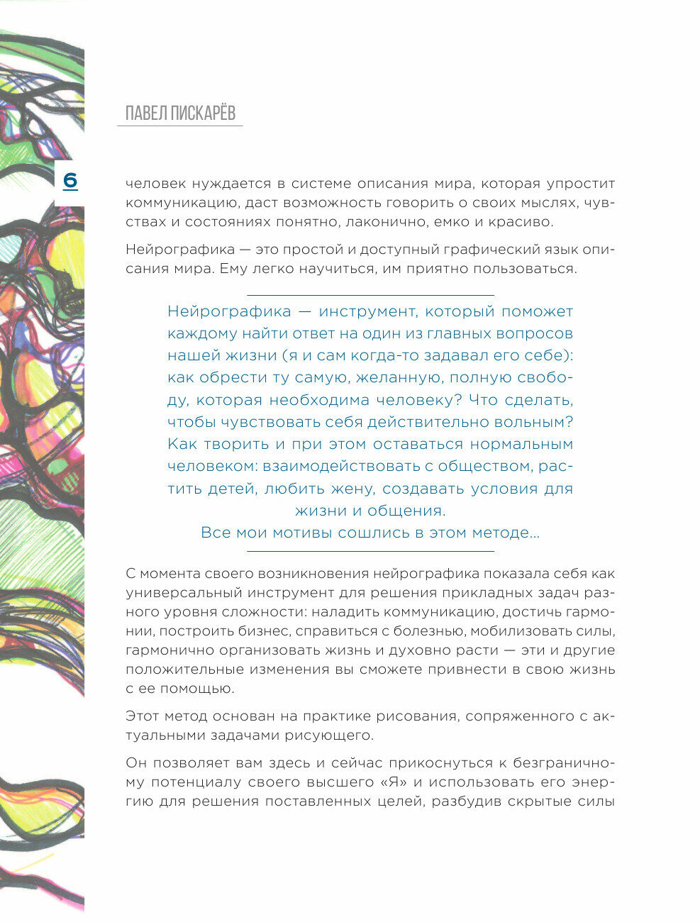 Нейрографика, или творческий метод трансформации мира, о которой идет речь в этой книге: - дает мощный источник энергии для решения текущих задач; - помогает войти в состояние потока, характеризующегося сосредоточенностью, полным вовлечением и нацеленностью на успех; - стимулирует жизненную активность и организовывает сознание таким образом, чтобы в жизни присутствовал драйв, мотивация и энтузиазм. Эта книга - действенный и совершенно экологичный драйвер счастья. Это история о том, как построить свою жизнь, начать ей управлять, влиять на нее и выстраивать обстоятельства в свою пользу без агрессии и насилия.