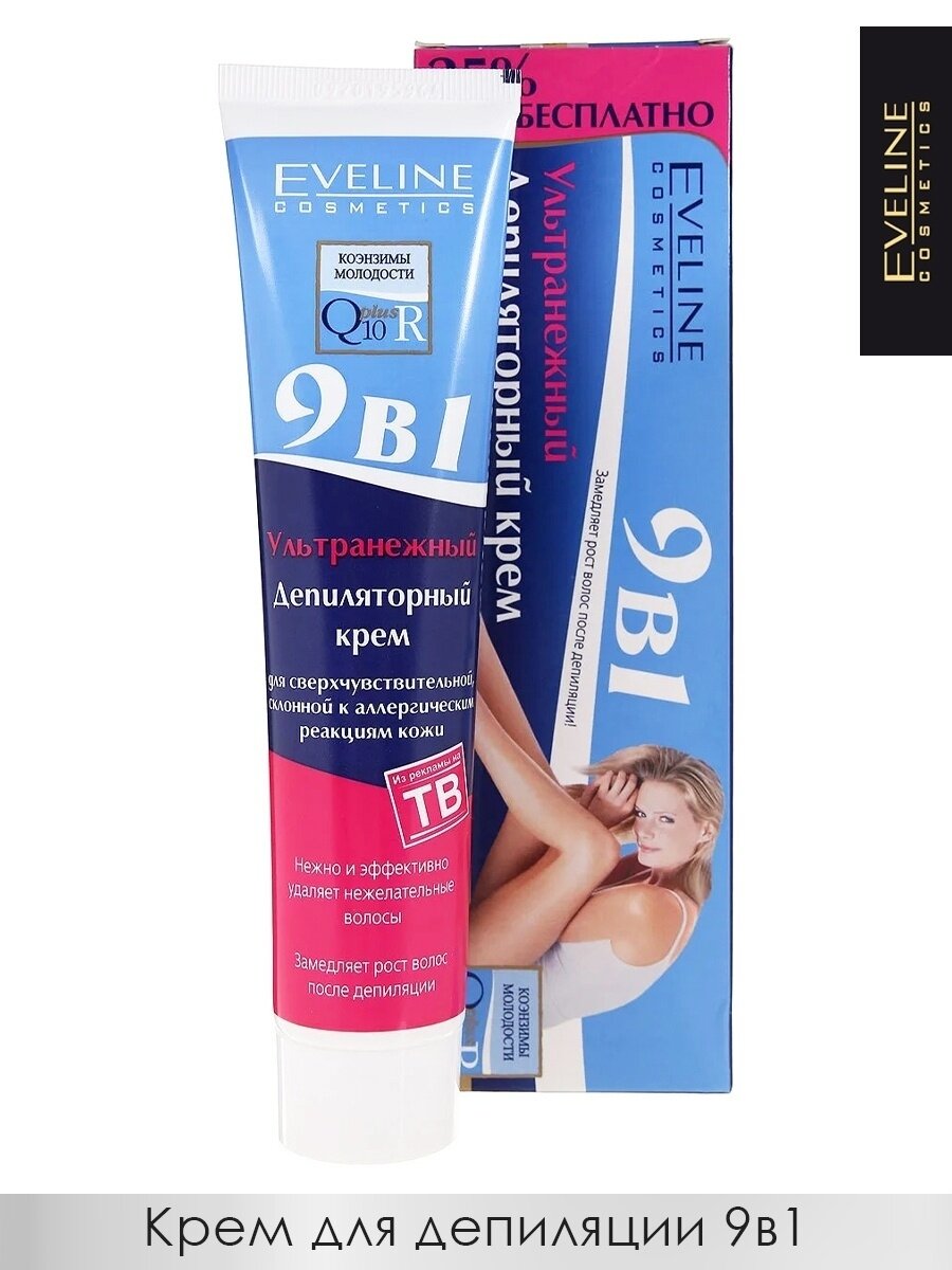 Крем EVELINE (Эвелин) депиляторный ультранежный 9-в-1 коэнзимы молодости q10 plus 125мл