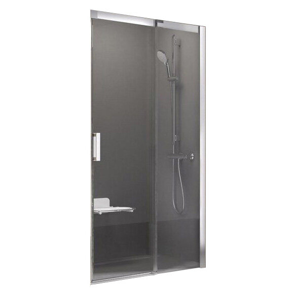 Роскошные раздвижные двери для Вашей ниши. Сделают герметичным душевое пространство шириной до 120 см. С помощью массивных профилей, верхнего и бокового, которые подчеркивают декоративные квадратные накладки, душевые двери придадут Вашей ванной комнате особый стиль.