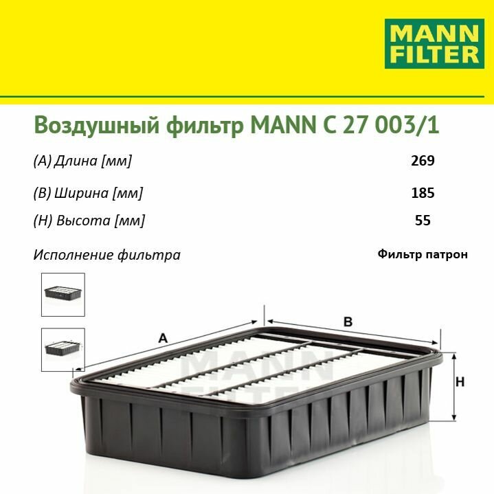 Фильтр воздушный двигателя MANN-FILTER C27003/1
