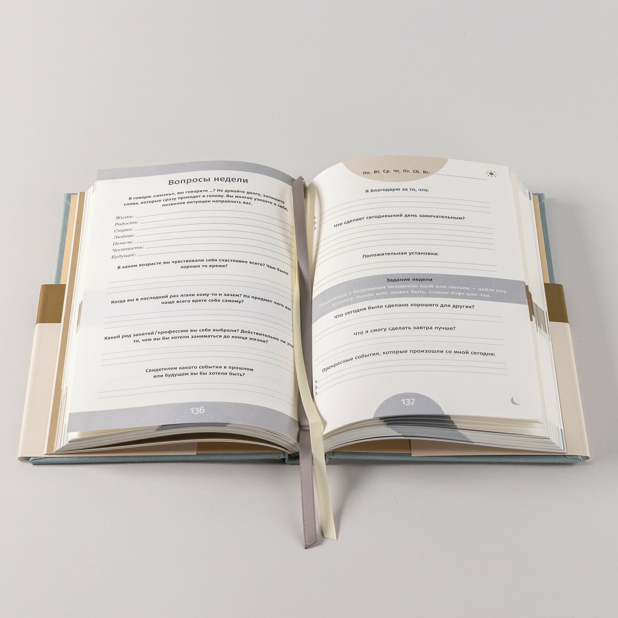 Полезный дневник для тех, кто хотел бы узнать о себе чуть больше, что-то изменить или просто зафиксировать какие-то приятные события из своей жизни. Сложно находить благодарности ежедневно, тем более, что не каждый день происходит что-то действительно важное и стоящее. А вот сам ежедневник стоит дорого, хотя качество замечательное. На мой взгляд, больше подойдёт для подарка, чем для себя. Есть риск того, что через неделю или даже меньше забросишь и даже не вспомнишь о его существовании.