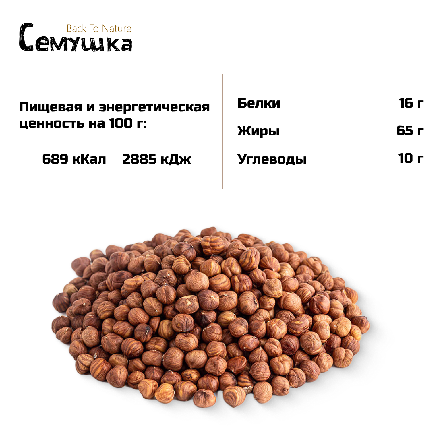 | Энергетическая ценность (ккал на 100 г) | 689 |