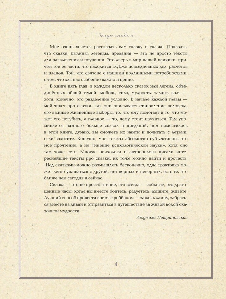 Путь взросления — не простой и не быстрый, на нем немало сложных моментов и кризисов. К счастью, на этом пути у детей есть помощник — заботливо предлагаемый сказкой "путеводитель" по тридевятому царству — миру изменений и превращений, откуда возвращаешься совсем другим человеком. В этой книге Людмила Петрановская расскажет о том, как сказки, легенды и предания помогают нам взрослеть, узнавать, как устроен мир и понимать самих себя. Книга состоит из пяти частей – эссе Людмилы о том, как именно влияют знакомые всем нам с детства сказки на процесс формирования базовых жизненных понятий: силы, таланта, любви, воли и мудрости. После каждого эссе вы найдете сказки, подобранные к теме эссе. Страница за страницей вы будете заново знакомиться со сказочными героями и их приключениями, открывая для себя неожиданные богатства, спрятанные в "Сказке об Иване-царевиче, Жар-птице и Сером Волке" с иллюстрациями И. Билибина, в сказке Шарля Перро "Кот в сапогах" с иллюстрациями Г. Доре, в средневековом сказании "Тристан и Изольда" с графикой У. Крейна, в сказке братьев Гримм "Замарашка" с иллюстрациями А. Рэкхема и ещё 11 зачитанных до дыр любимых сказках.