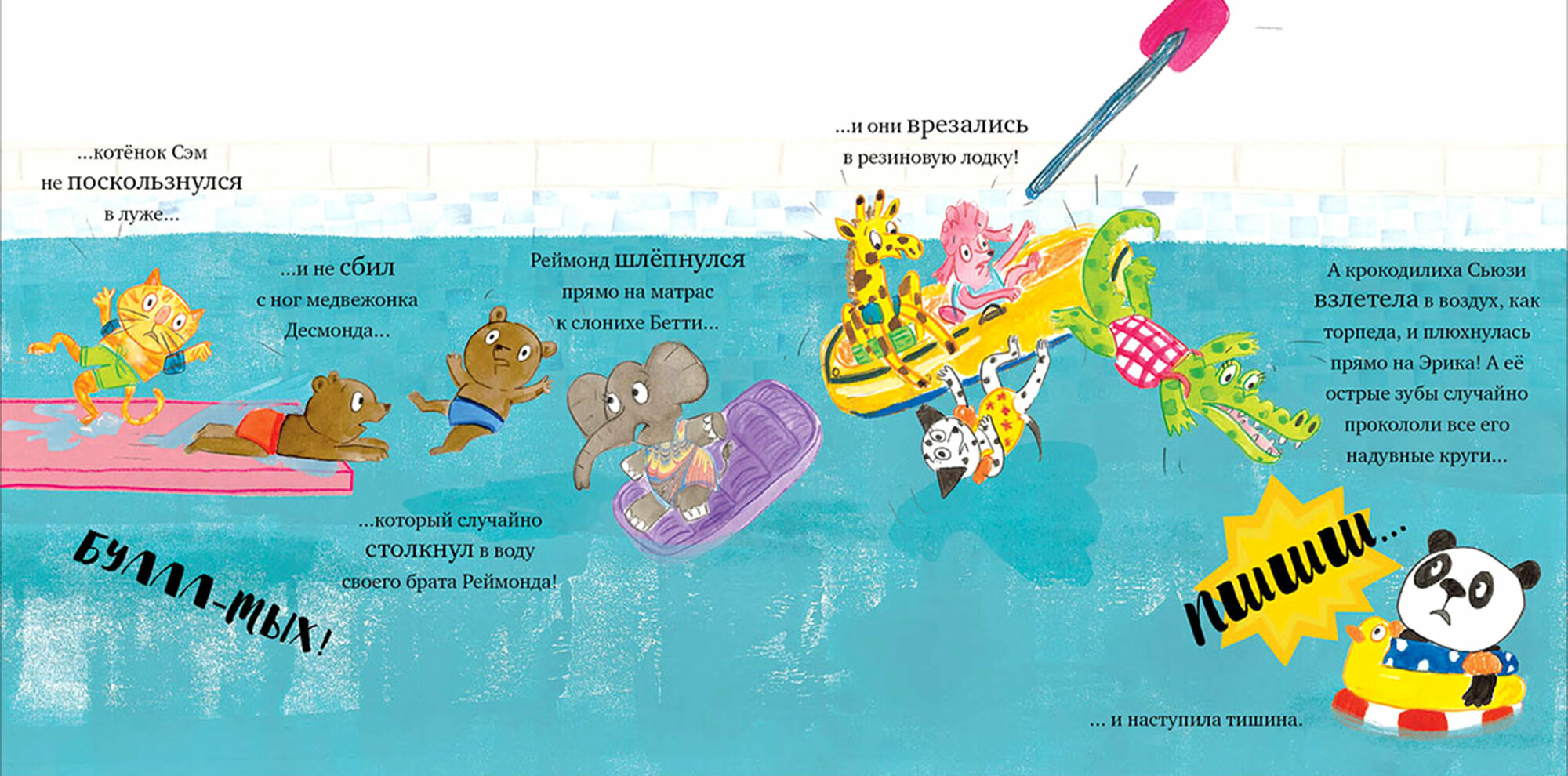 Покупали книгу перед посещением бассейна в детском саду. История очень понравилась ребёнку, иллюстрации яркие, их много. Ребёнок просто перечитать книгу много раз. Как результат в бассейн пошёл уверенно и не боялся. Рекомендую.