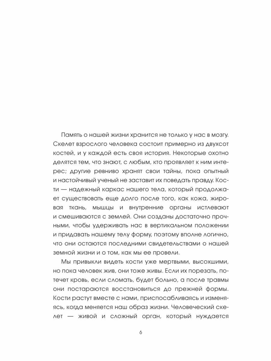 Основываясь на годах исследований и огромном профессиональном опыте, всемирно известный судебный антрополог, кавалер Ордена Британской империи профессор Сью Блэк приглашает нас в потрясающее путешествие, полное неожиданных открытий. Каждая часть нашего тела от макушки до пят - череп, лицо, позвоночник, грудная клетка, руки, таз, ноги - рассказывает свою собственную историю. Все, что мы едим, куда ездим, что делаем, оставляет след, который терпеливо ждет месяцы, годы, а то и столетия, пока судебный антрополог возьмется его расшифровать.