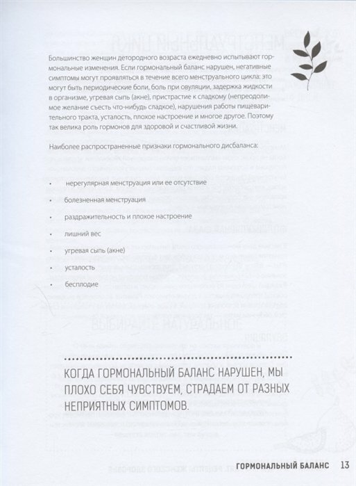 Самое главное в книге указаны симптомы и описаны варианты нарушения по каждому женскому гормону-понижен,повышен и какие продукты дополнительно помогают изменить ситуацию если нет клинического случая.