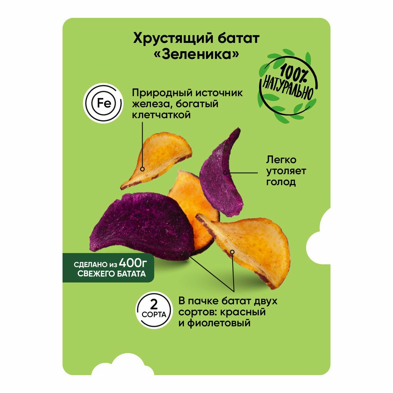 Здоровый овощной перекус от бренда "Зеленика" из батата. Энергия четырех клубней батата. Вкусно как с грядки.