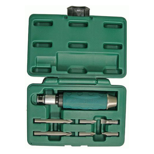 Ударно-поворотная отвертка с корпусом, снабженным резинополимерным чехлом, обеспечивающим надежное удержание инструмента во время работы. Вставки-биты изготовлены из стали S2. Привод отвертки - из хромомолибденовой стали.