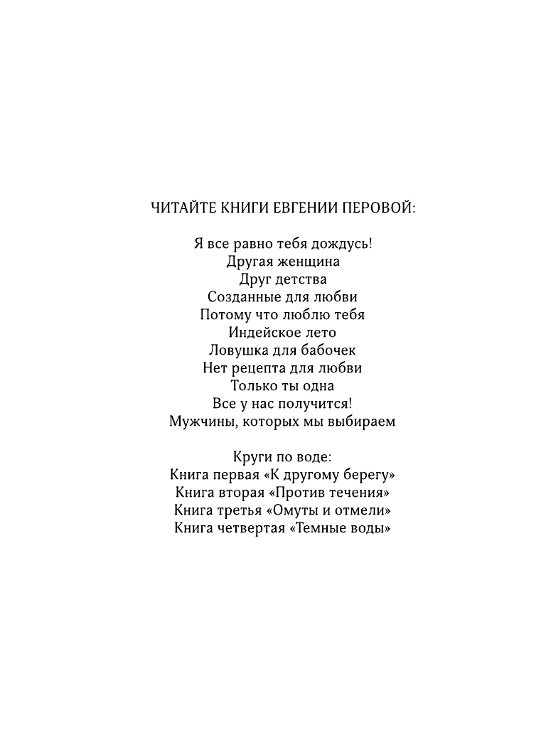 "Против течения" - второй роман Евгении Перовой из цикла "Круги по воде", в котором рассказывается о судьбах Марины и Алексея Злотниковых. Сначала герои просто любили друг друга на расстоянии, потом, пройдя через тяжелейшие испытания, смогли воссоединиться и стали семейной парой. Восемь лет брака, двое детей… И вот их отношения снова под угрозой. Внезапная измена Алексея ставит всех перед сложным выбором. Сохранить семью или разрушить? Противостоять соблазну или уйти к юной любовнице? Простить мужа или прогнать?..