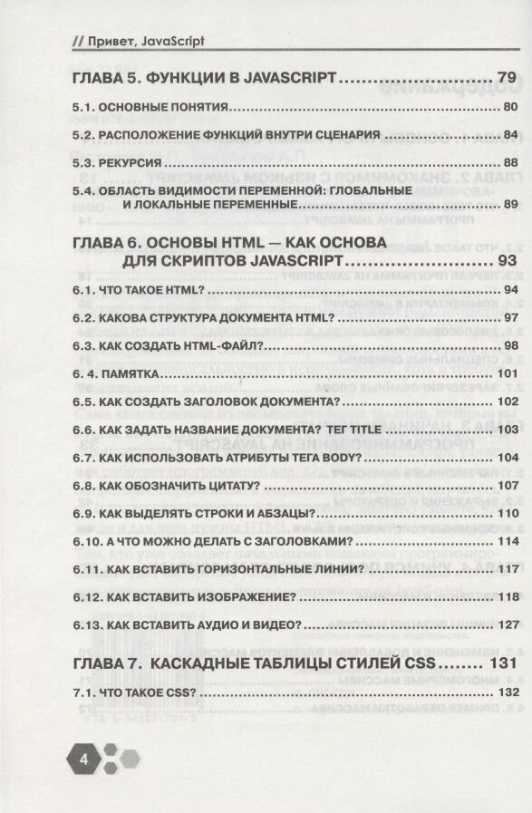 Сама книга состоит из последовательных заданий, которые вы будете выполнять под чутким руководством автора книги. Вы сами напишите свои первые программы на JavaScript; узнаете, как работает программный код; как использовать логические операторы, переменные и выражения JavaScript; научитесь пользоваться массивами и функциями; попутно узнаете, что такое и для чего нужны HTML и CSS, а также и многое другое.