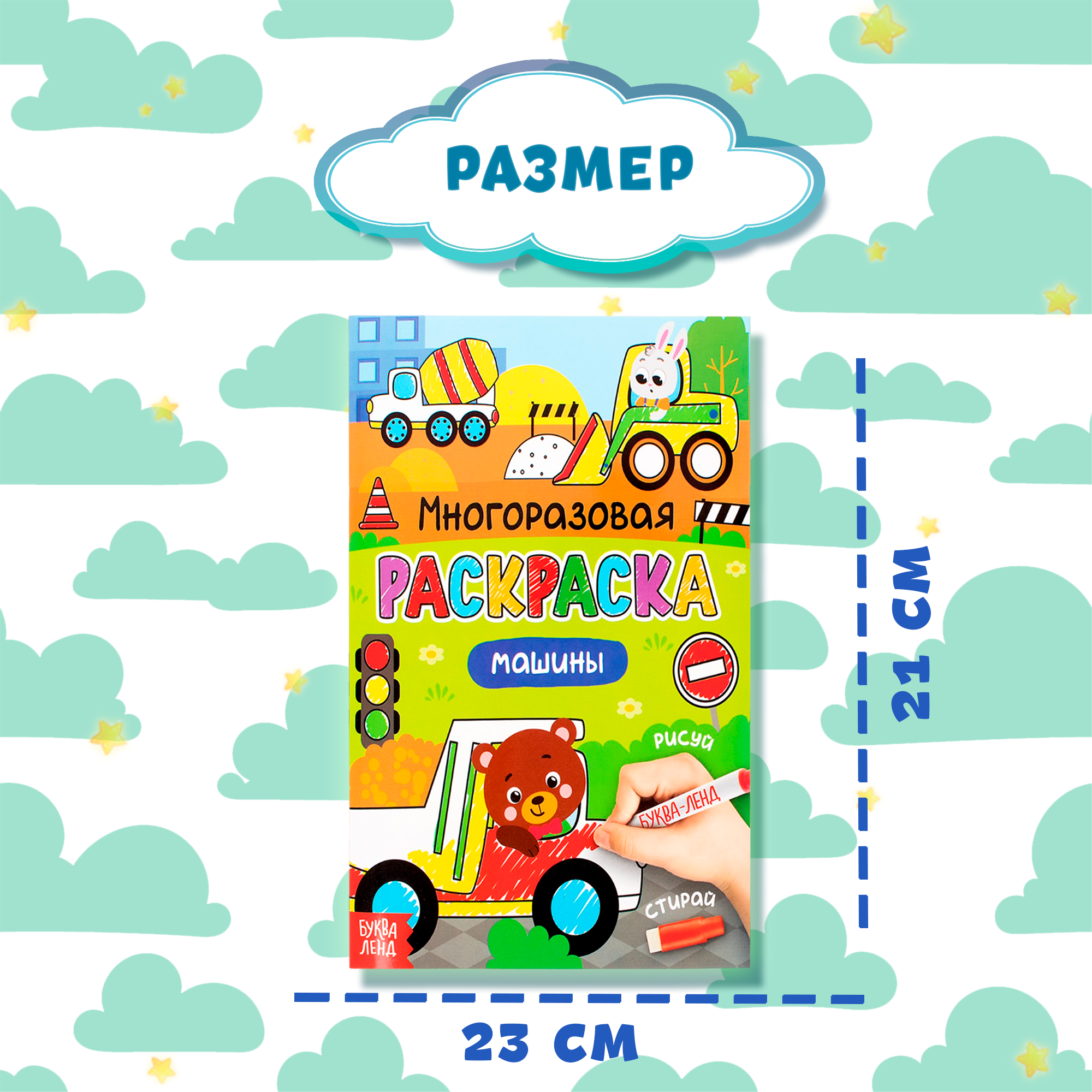 Многоразовая раскраска Машины с маркерами; Буква-Ленд, 2020