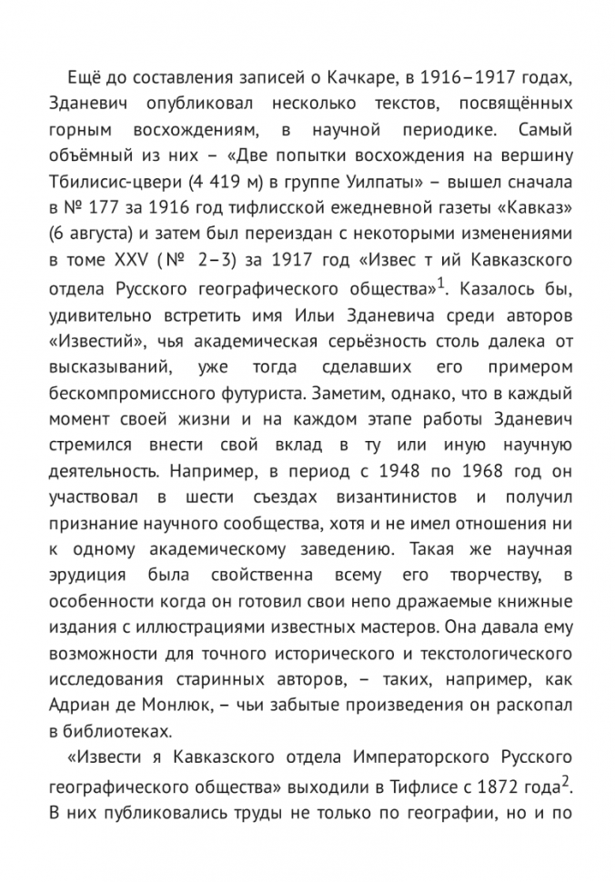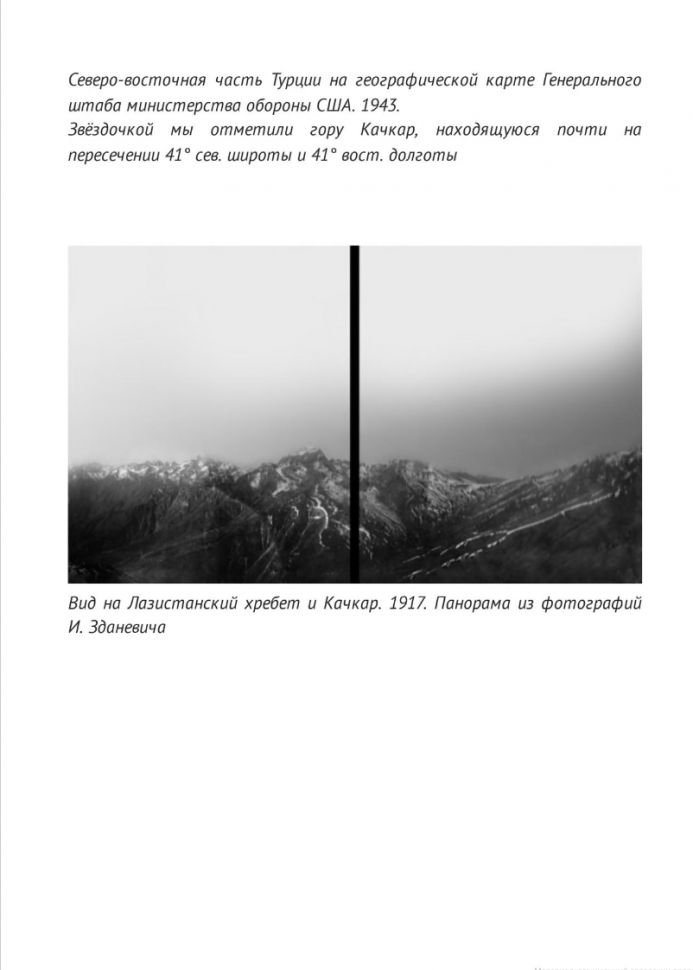 Не стоит думать, что это героическое восхождение было лишь воплощением альпинистской страсти писателя, благополучно подсказанным ему обстоятельствами весны и лета 1917 года. Очевидно, что за покорением Качкара для Ильи Зданевича стояло и нечто совсем иное. Если верить его записным книжкам, у него и у художника Михаила Ле-Дантю не позднее осени 1916 года возникает идея создания нового творческого объединения, называемого по географической широте Тифлиса. Друзья основывают в Петрограде Университет "41°", позднее группа с таким названием заявит о себе в столице независимой Грузии, в конце концов, Университет и одноимённое издательство появятся в Париже. А осенью 1917-го Зданевич отделится от археологической экспедиции по территориям северо-востока Турции и не просто совершит акт футуристического возвышения, поднятия на Олимп, он взойдёт на гору, находящуюся в точке пересечения 41-й параллели и 41-го меридиана, дав соседней с Качкаром безымянной вершине имя своего недавно погибшего друга.