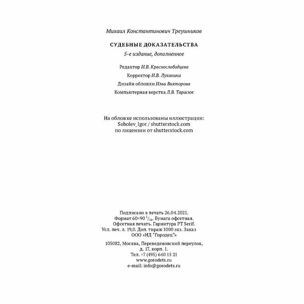 Судебные доказательства (Михаил Треушников); Издательский дом «Городец», 2016