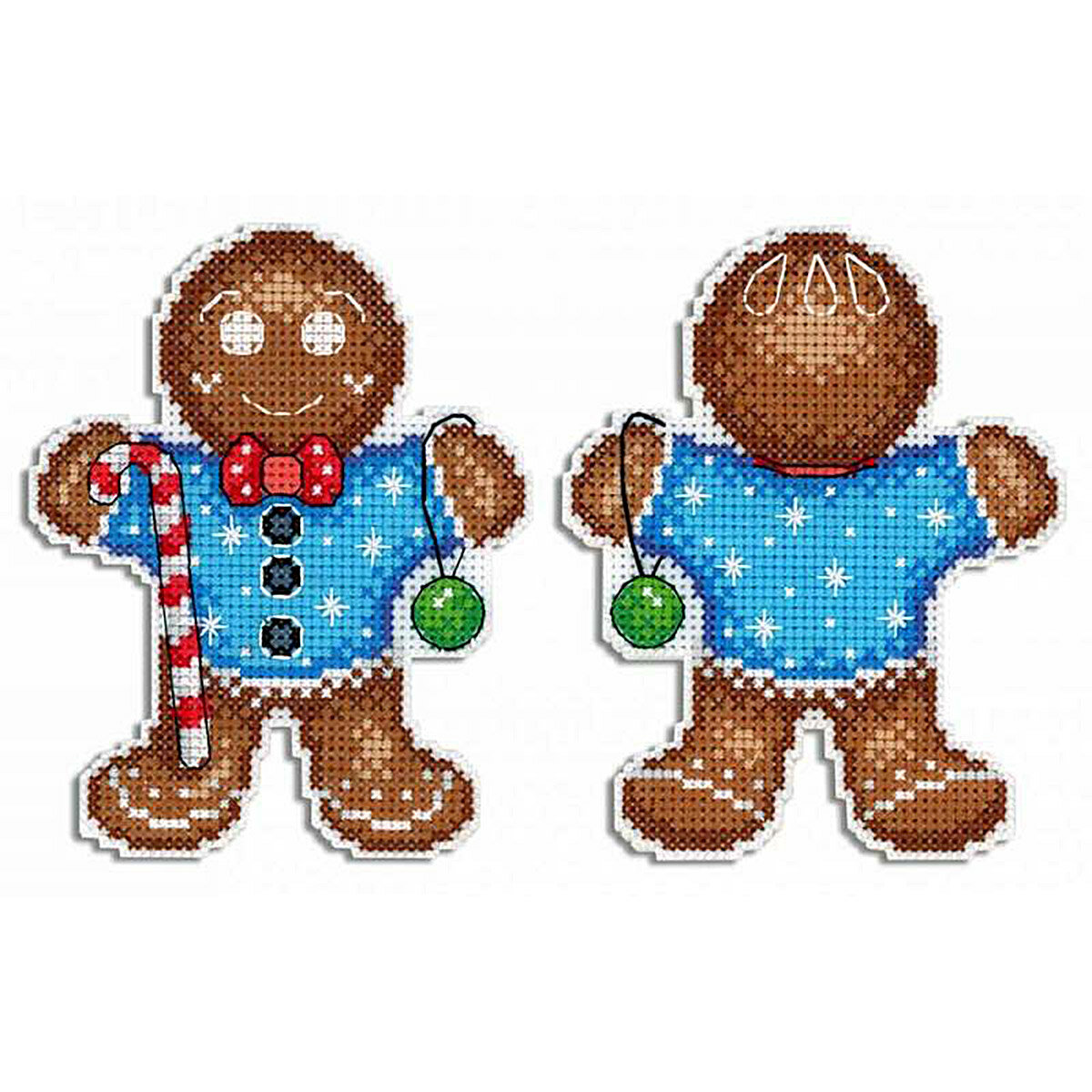 Сделайте своими руками яркий сувенир 'Пряничный человечек' – это увлекательно и быстро. Набор подойдет даже начинающим, достаточно проявить терпение, аккуратность и освоить простую технику 'крест'. Пяльцы или рамки не понадобятся – пластиковая канва отлично держит форму. Готовые элементы надо вырезать по контуру и соединить между собой аккуратными стежками. При желании вклейте между деталями ленту-подвес.