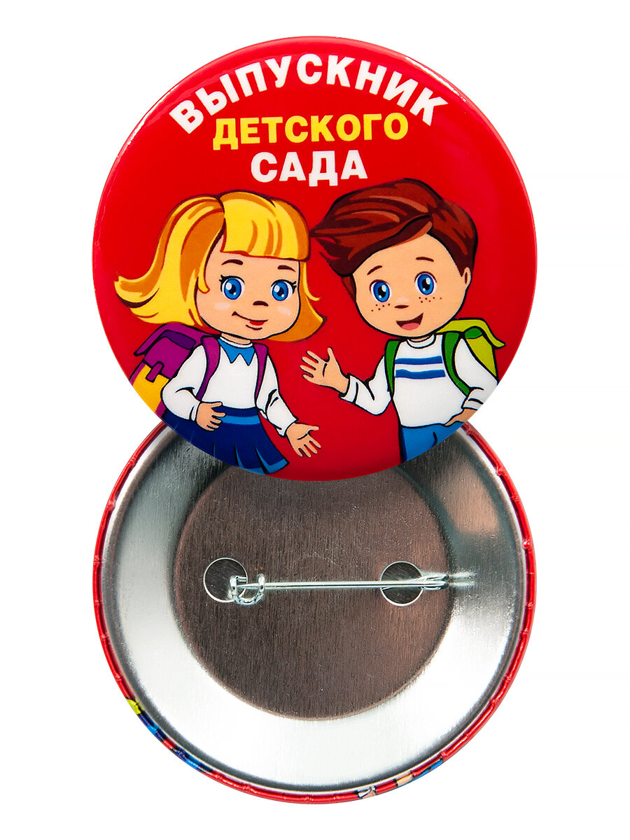 Значок 56 мм, в наборе 10 штук, Выпускник детского сада/ дети, красный Символик