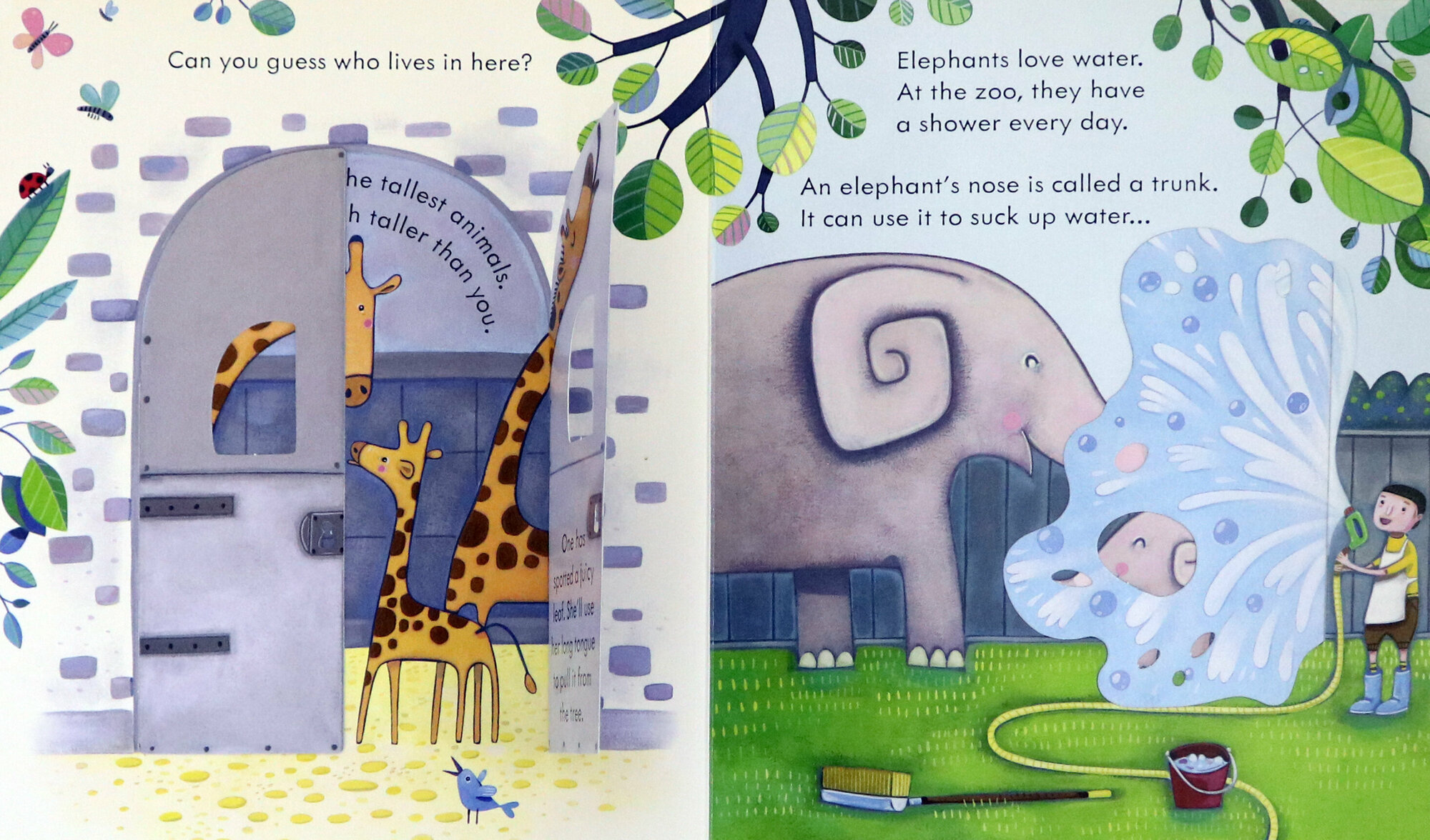 Peep under leaves and behind doors to see the animals in the zoo in this delightful flap book for young children. With flaps and holes to peep underneath and through, noisy parrots, cheeky monkeys, very tall giraffes and lots more are revealed. Sure to become a firm favourite for young animal lovers.