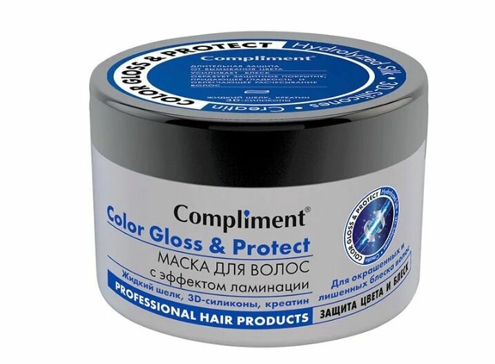 Маска для волос эфф. ламинац. c жид. шёлк., 3D-силик, креатином Color Gloss&Protect Compliment 500мл ООО ТИМЕКС ПРО